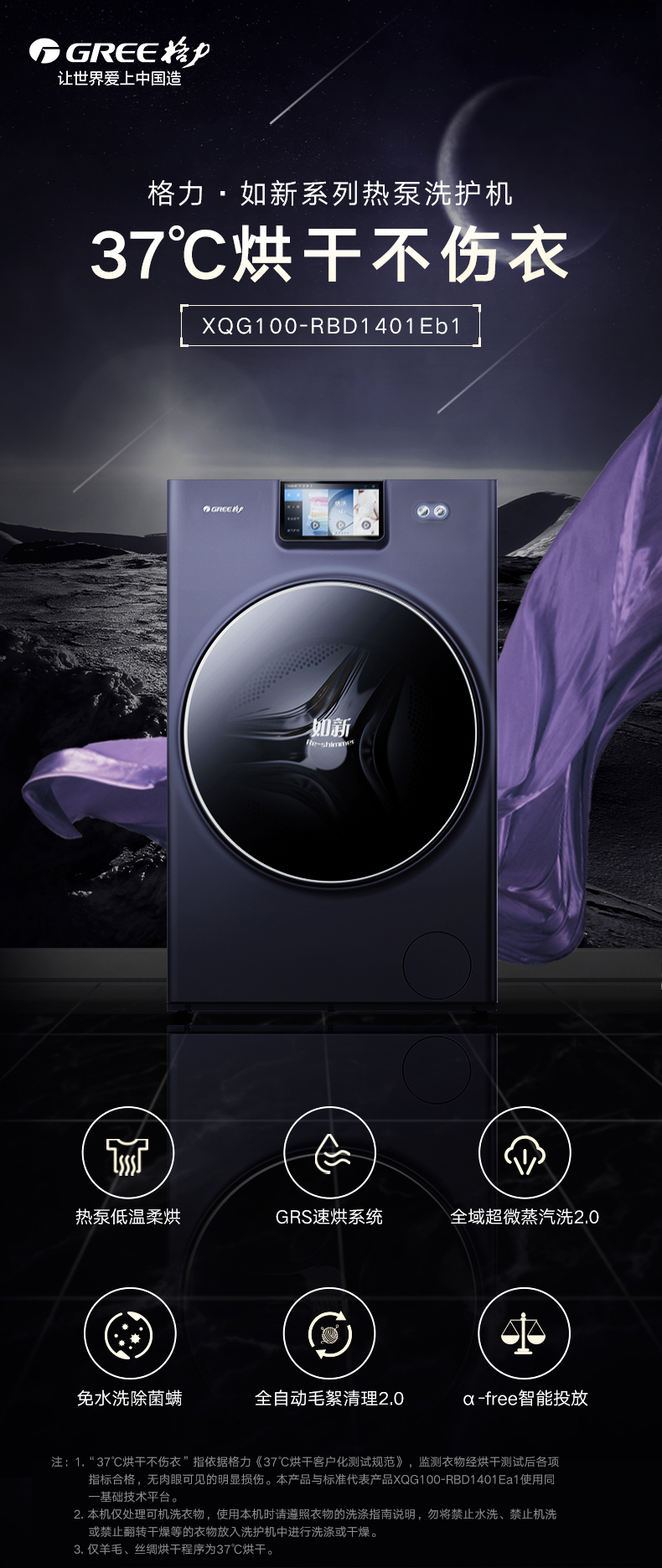 37℃低溫柔烘不傷衣;全域超微蒸汽洗2.0;ICleaner全域智清潔