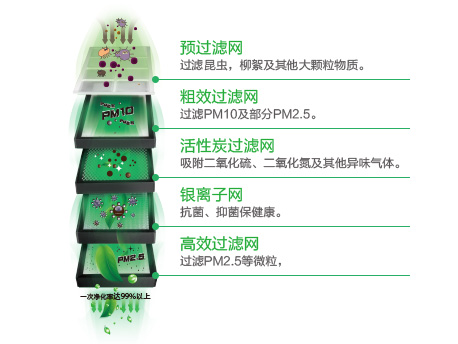 創(chuàng)新使用五層過濾模式,徹底隔絕顆粒進入室內(nèi),經(jīng)權(quán)威結(jié)構(gòu)檢測,一次過濾效率達99.4%,貼心呵護家人健康。